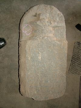 | Description / विवरण | It is a rectangular block having semi circular upper portion. The block is divided into two parts. Lower portion of the block is having an inscription and upper portion is bestowed with a Sivalinga. Sivlinga is badly withered. |