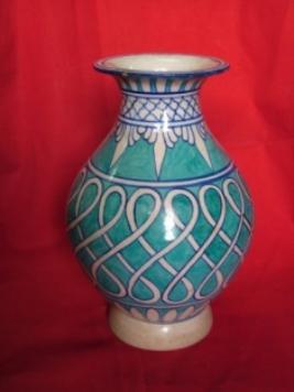 | Description / विवरण | Flower Vase, light blue background, painted with white lines in zig zag manner. |