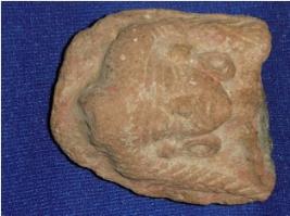| Description / विवरण | Terracotta female head, her eyes, nose and ears are prominent. She is wearing two round earrings and having two plaid hair. |