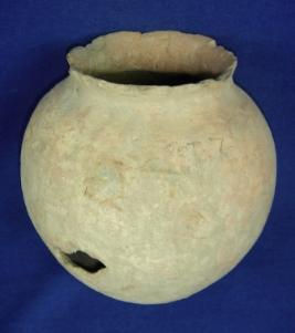 | Description / विवरण | Semi fine, ill fired terracotta Miniature pot with oval base, round body, broad mouth with an averted rim which is partially flaked off. Small holes are seen on the body due to breakage. |