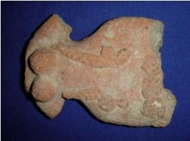 | Description / विवरण | Terracotta figurine of a mother goddess whose legs, arms and head is missing. She has prominent breasts and adorned with a necklace which broken and a floral waistband. |