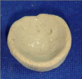 | Description / विवरण | Coarse terracotta vessel - a tiny bowl, with circular rim, shallow, tapering body and broad, flat and circular base. It is hand made. |