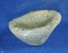 | Description / विवरण | Coarse, handmade terracotta tiny bowl with pointed base, flayed sides and rough rim. There is a hole in the base due to breakage. |