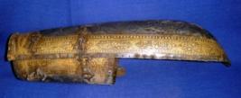 | Description / विवरण | Arm guard made of faulad having embossed vine and blossom design with border of Persian inscription koft work. |