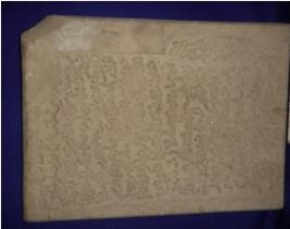 | Description / विवरण | Stone slab with inscription written in Persian script in eighteen horizontal and two vertical lines. On the back side of inscription, a huge foot print is depicted. |