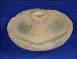 | Description / विवरण | Coarse ill fired terracotta lid in the shape of a plate with flat base, thin rim which is partially broken. A cylindrical body is made with a perforated hole inside, probably used as handle. |