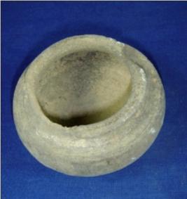 | Description / विवरण | Coarse terracotta vessel - a small lota , with broad mouth, averted rim, bulbous body and round base. It has a carination mark on the upper base. It has a carination marks on the upper body. The rim is slightly broken at the two sides. |