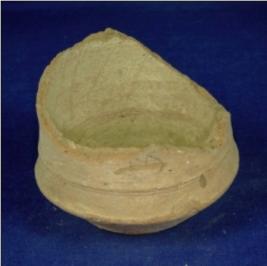 | Description / विवरण | Terracotta pot, lower part of which is only visible. It has a flat and circular base with a broken body with carination in middle. Upper part of the pot is missing. |