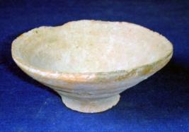 | Description / विवरण | Terracotta tiny bowl flayered body, with sparse striation marks, featureless rim, and round, flat base with string marks. |