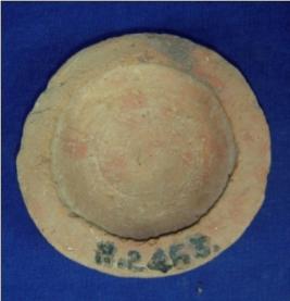| Description / विवरण | Coarse terracotta vessel - probably lid or small plate, with thick, featureless rim, circular body and footed base. |