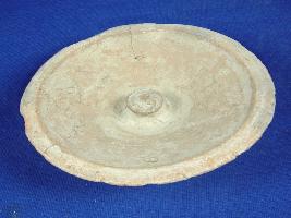 | Description / विवरण | Coarse terracotta vessel - lid with flat and circular footed base, flared conical body and shallow from inside. In the inner centre a knob is there to hold the lid. |
