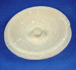 | Description / विवरण | Coarse terracotta vessel - lid with a flat and circular footed base, flared conical body, a knob in centre to hold the lid. |