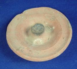 | Description / विवरण | Ill fired terracotta lid having thick circular body with broad rim and footed circular base. There is a cylindrical round knob in the centre. There are close striation marks on the exterior surface. |