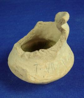 | Description / विवरण | Fine terracotta vessel-pot with oval base, bulbous body and broken mouth. |