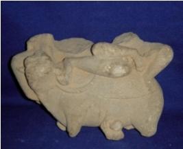 | Description / विवरण | Fragment of a sculpture depicting probably Shiva and Parvati is in lalitasana, on their vahana Nandi, but only legs are present. Rest part of the body is missing. Their vahana Nandi is clearly visible but the limbs and head is rubbed off. |