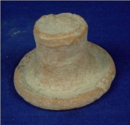 | Description / विवरण | Terracotta lid of flat circular base with rim and cylindrical knob. The inner side is hollow and inner base has incised circle. |