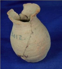 | Description / विवरण | Terracotta pot with flat and circular base, drum shaped body, low neck and averted thin rim, some parts are missing. Its body was initially broken but later restored. |