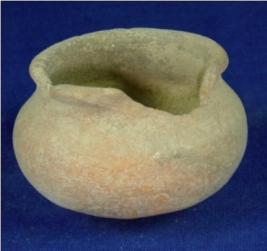 | Description / विवरण | Terracotta pot with oval base, round body, low neck and thin and averted rim which is partially broken. It has smooth surface. |