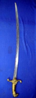 | Description / विवरण | Simple single edged sword having lion head design hilt of brass. |