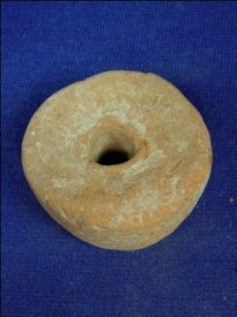 | Description / विवरण | Terracotta wheel, with flat and smooth surface. A hole is seen at the centre probably to fix it with the axle. |