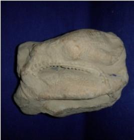 | Description / विवरण | Fragment of a sculpture depicting the left leg of a human figurine, visible from thigh. A little part of tussles is only visible, towards its left a part of beaded garland is seen. The rest part of the body is missing. |