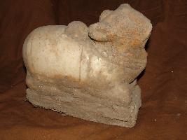 | Description / विवरण | It is an image Nandi, vehicle of lord Shiva. The image is in sitting posture. Mouth portion of the image is broken. There is a symbol as hump on its back. Neck is ornamented. |