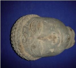 | Description / विवरण | Fragment of a sculpture depicting the head of a Jain Tirathankara having joined eyebrows and half open eyes. The tip of the nose is rubbed off. His hair is tied in sirastrakam style. |