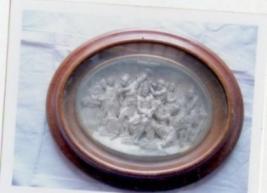 | Description / विवरण | This is an oval shape medallion of silver colour. In this medallion, a dead body is carried by two people. A group of male and females are depicted and one person is holding a model for lighting purpose. All the members are in the different pose. |