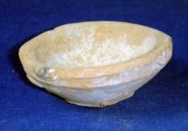 | Description / विवरण | Coarse terracotta lamp having flat, round base, flayed body, thick featureless rim. |