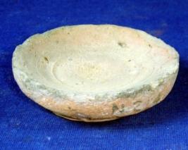 | Description / विवरण | Ill fired, terracotta lamp with flat, circular base, flayed body with feature less rim, inside the body having concentric lines. |