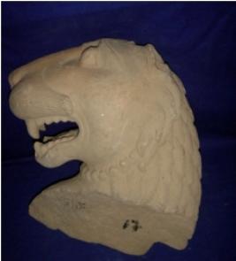 | Description / विवरण | Fragment of sculpture of a lion head, broken but its mouth is open, hair is decorated with incised lines. It is probably a mythical lion. |