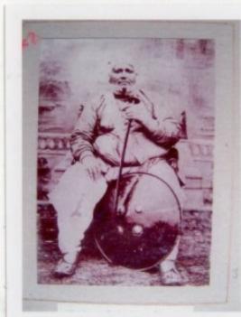 | Description / विवरण | This is the photograph of Thakur Lakhdir Singh who is sitting on a chair with a shield and sword. |