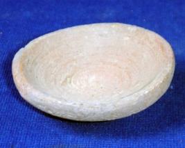 | Description / विवरण | Ill fired, coarse small terracotta lamp with flat, circular base and flaring body. Close striation marks are prominent. |