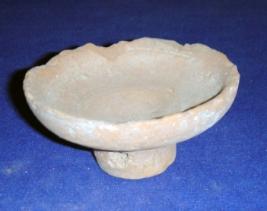 | Description / विवरण | Terracotta footed lamp with transverse perforated hole at the base, smooth flared shaped body and rim part is flaked off. |