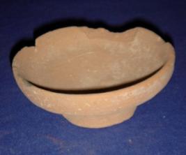 | Description / विवरण | Pedestal shallow lamp with a transverse perforation at the base which was probably to put several lamps in a raw. The rim is partially broken. |