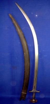 | Description / विवरण | Single edged, faulad sword with Alamgiri hilt which also made of iron without any decoration. The scabbard is made of wood covered by velvet. |