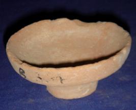| Description / विवरण | Pedestal shallow lamp with a transverse perforation at the centre which was probably to put several lamps in a row. The rim is partially flaked off. |