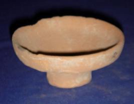 | Description / विवरण | Pedestal lamp with a transverse perforation at the centre which was probably to put several lamps in a row. The rim is partially flaked off. |