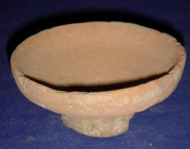 | Description / विवरण | Pedestal lamp with a transverse perforation at the centre which was probably to put several lamps in a row. The rim is partially flaked off. |