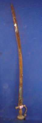 | Description / विवरण | Iron sword with curved blade having rusted and a simple Alamgiri hilt having knuckle guard. |