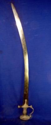 | Description / विवरण | Iron sword with curved blade and a simple Alamgiri hilt having knuckle guard. |