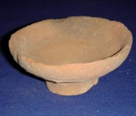 | Description / विवरण | Coarse, well fired, pedestal terracotta lamp having transverse perforation at the base, probably meant to tie several lamps in a single row. |