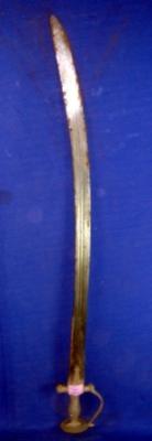 | Description / विवरण | Iron sword having slightly curved blade and three long grooves on both side of the blade and a simple Alamgiri hilt with knuckle guard. |