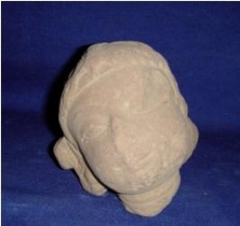 | Description / विवरण | Fragment of an independent sculpture depicting a female head, having elaborate head gear. The figurine has open eyes but left eye and nose is partly chopped off. |