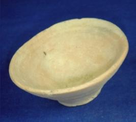 | Description / विवरण | Ill fired terracotta lamp on a footed circular base and flayered sides. There are close striation marks on the interior surface. |