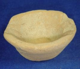 | Description / विवरण | Terracotta lamp on a flat circular base, flaring sides and inverted rim. Portions of rim have flaked off. |