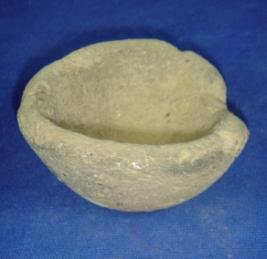| Description / विवरण | Coarse and ill fired terracotta lamp on flat circular irregular side and thick rim which is broken at portions. |
