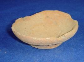 | Description / विवरण | Plain, terracotta coarse vessel - lamp diya with low pedestal. The layer at the rim is flaking off. |