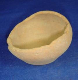| Description / विवरण | Plain, terracotta coarse vessel - a semi fine lamp, with bulging body and broad, flat circular base. The rim is broken all around. |