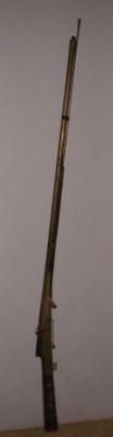 | Description / विवरण | Match-lock todedar desi gun having long single barrel. The butt has ivory inlay work of fish and floral motifs. |